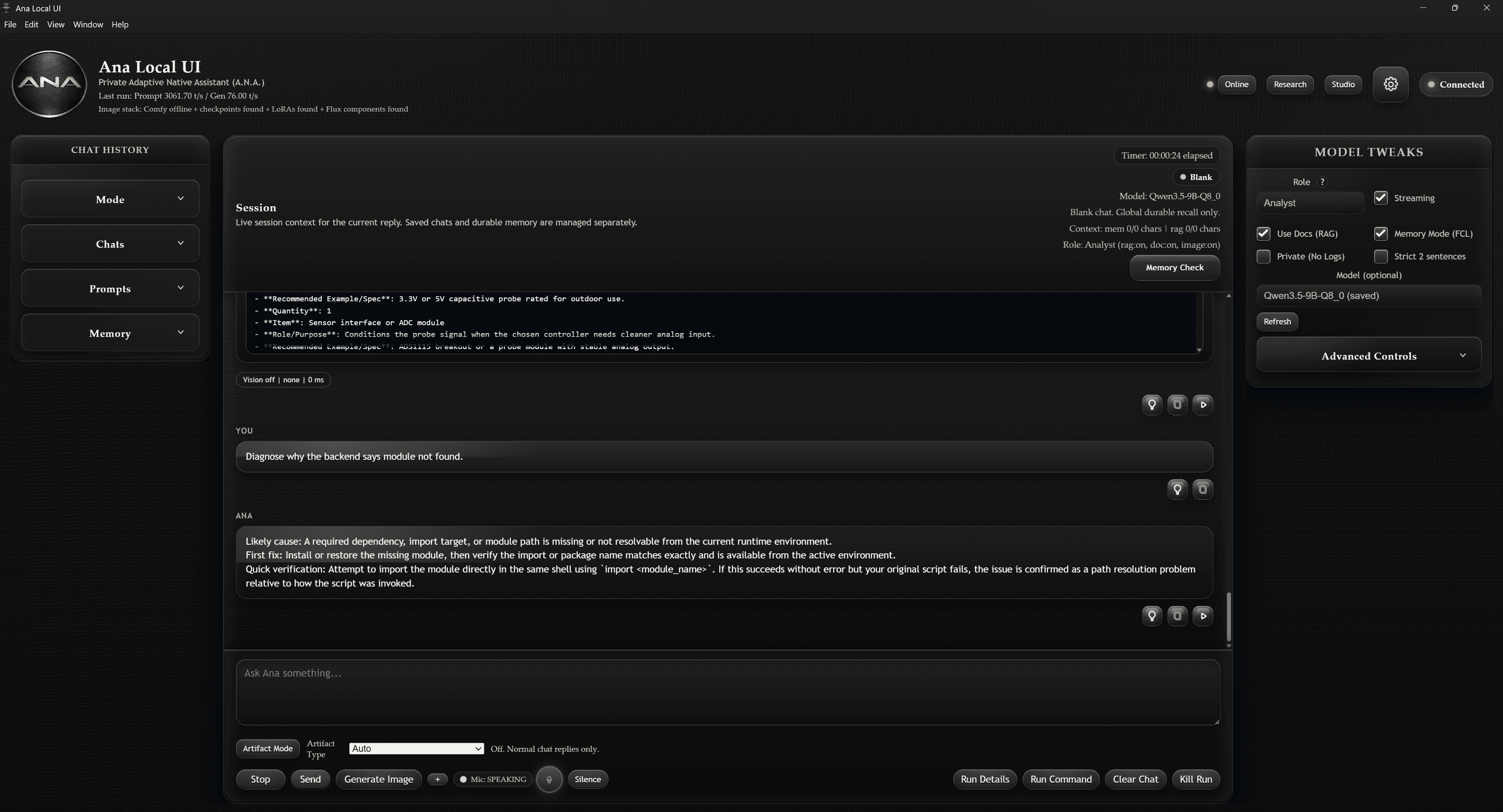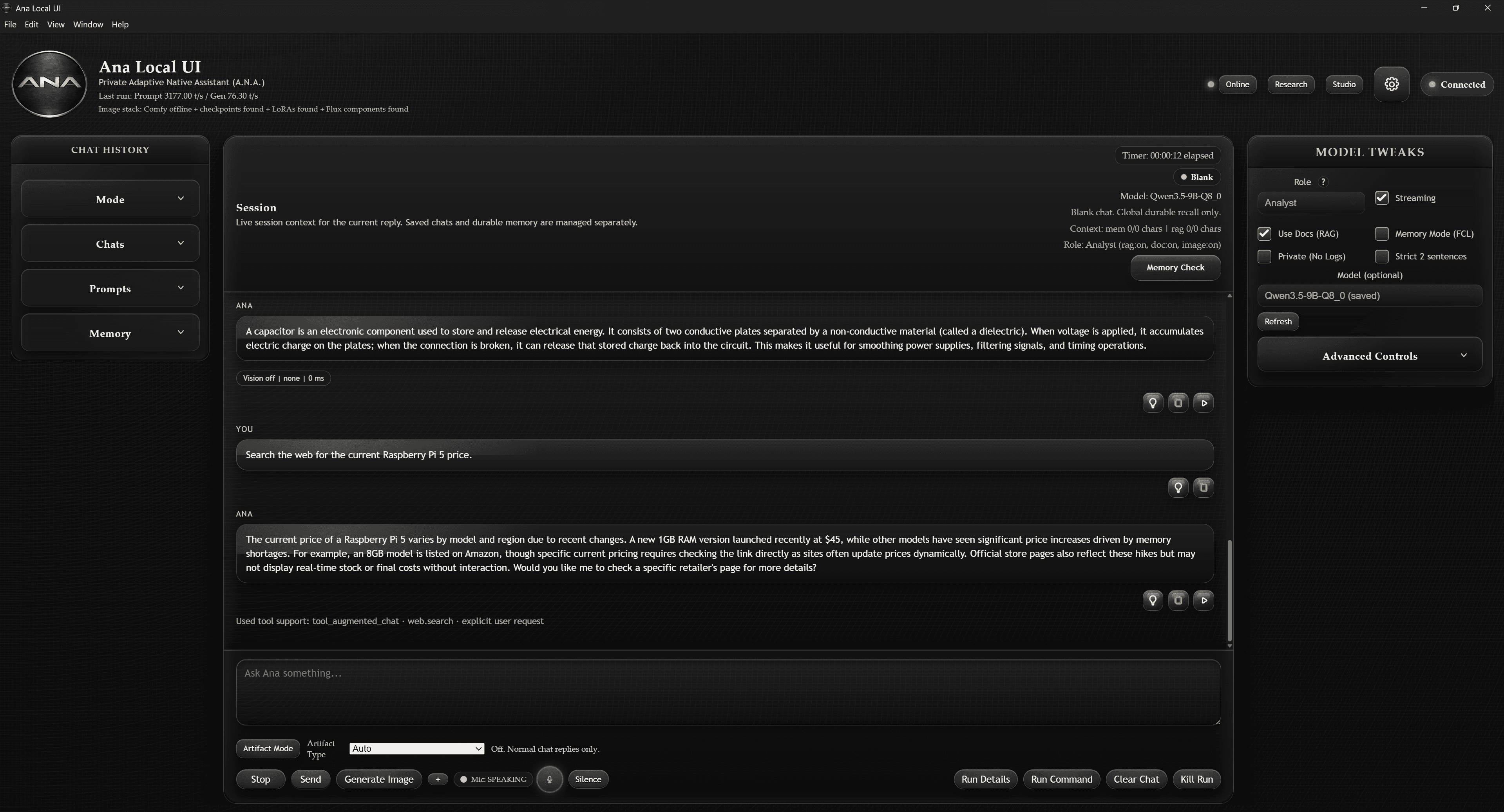 Ana Runs real AI models locally for privacy, ownership, and offline capability. That means storage and hardware matter.