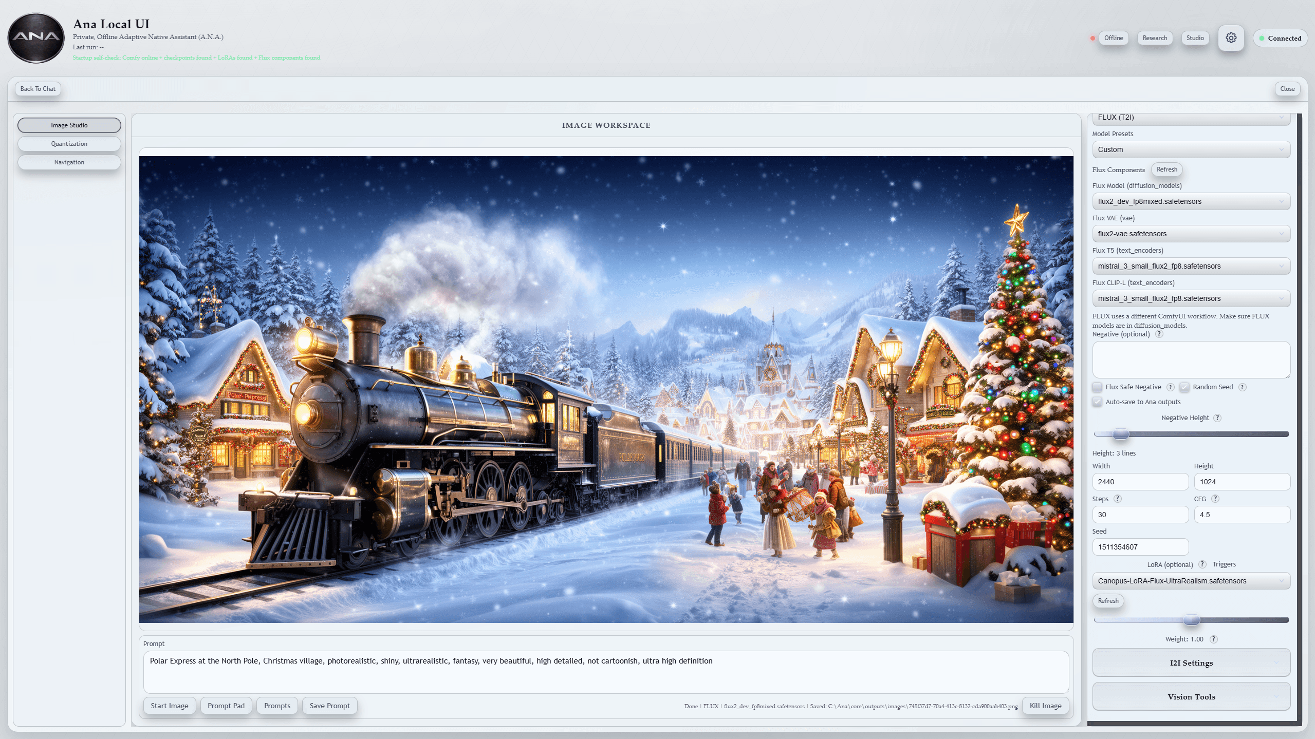 Ana can connect to Comfy UI (downloaded separately). Simply download models